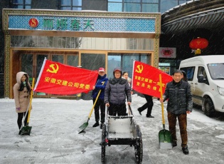 黨旗飄飄,安徽交建黨委除雪鏟冰獻真情