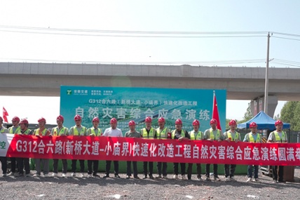 4月18日上午,安徽交建G312合六路(新橋大道-小廟界)快速化改造工程項目組織開展自然災害綜合應急演練。