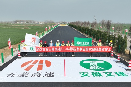 4月1日,由安徽省交通建設股份有限公司承建的五蒙高速公路TJ-04標中麵層瀝青砼試驗段順利完成,標誌著我標段正式進入瀝青中麵層施工階段。