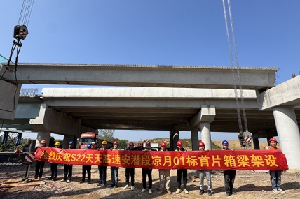 10月23日,由安徽省交通建設股份有限公司承建的S22天天高速安慶至潛山段涼月01標項目迎來首片預製箱梁架設重要節點,標誌著項目正式進入橋梁上部結構施工新階段。
