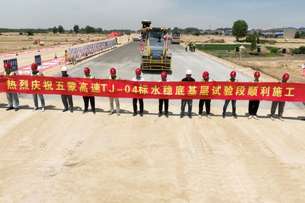6月1日上午,由安徽省交通建設股份有限公司承建的五蒙高速TJ-04標項目水穩底基層試驗段開始攤鋪,標誌著安徽交建五蒙高速路基04標項目率先進入路麵施工階段。