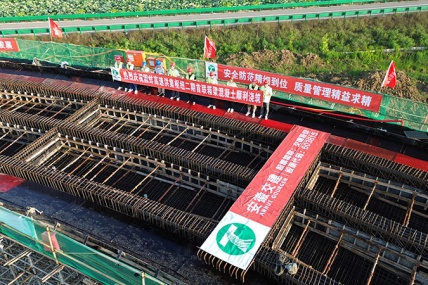 7月5日上午,由安徽省交通建設股份有限公司承建的固蚌高速洪集樞紐二期工程DK1+257匝道橋首聯現澆箱梁順利完成澆築