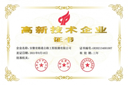 12月14日,安徽省交通建設股份有限公司下屬全資子公司安徽省路通公路工程檢測有限公司(以下簡稱路通檢測公司或公司)喜獲“高新技術企業”榮譽,標誌著路通檢測公司正...