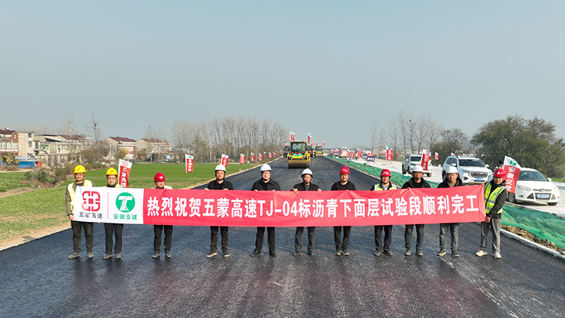 12月2日,由安徽省交通建設股份有限公司承建的五蒙高速公路TJ-04標瀝青下麵層試驗段順利鋪設,標誌著我標段正式進入瀝青麵層施工階段。