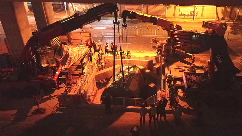合肥軌道交通建設首次應用:低淨空折臂吊車接力吊裝技術