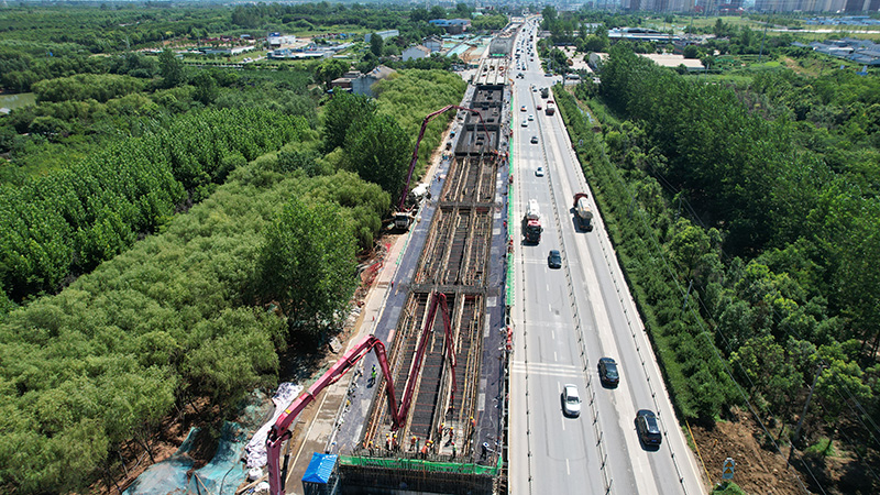 7月21日上午,由安徽省交通建設股份有限公司承建的G312合六路(新橋大道-小廟界)快速化改造工程項目迎來首聯箱梁混凝土澆築,標誌著該項目正式進入橋梁上部結構施工。
