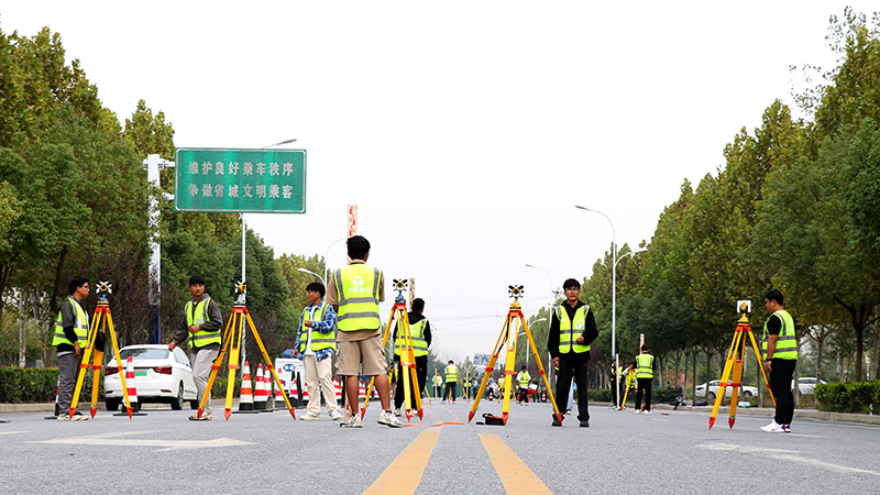 次日上午,在安徽交建大連路項目竣工封閉路段,學員早已準備充分、躍躍欲試。在“全站儀對點賽”和“水準+導線”技能競賽,導師互換小組以裁判的身份進行全程跟蹤,依據各組完成時間、操作規範性、測量結果以及第一天的理論成績綜合評判最終結果。