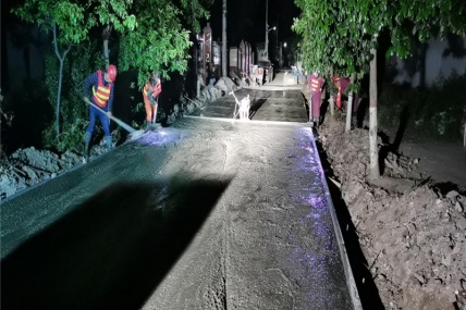 淩晨時分,城市的萬千燈火漸弱,界首農村公路項目工地上卻燈火通明,挖掘機、灰土拌合機、混凝土拌合站轟鳴聲此起彼伏,工程運輸車來回穿梭,一片忙碌的景象。