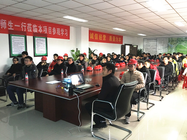 項目總工何輝向安理工大師生介紹了企業文化、項目概述、重難點及施工工藝,通過圖文、模型、視頻等多元化形式,師生門對對項目有了深入了解,何輝理論聯係實際,剖析了建設中存在的重難點及應對措施。