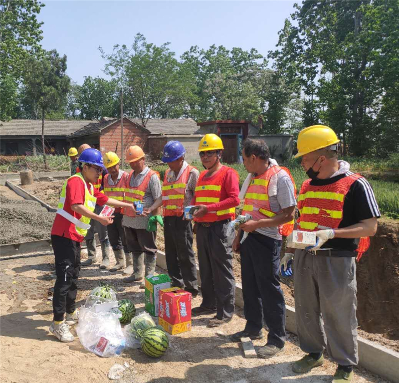 施工加速度的背後是汗水。在五一期間,界首市氣溫連續一周高達36℃,項目部完善高溫作業應急處理預案,合理安排作息時間,減少了白天室外作業時間,披星戴月、節假無休的搶工模式也成了家常便飯。“苦是苦了點,但也是鍛煉的好機會,雖然任務重,但是大家戰鬥在一起,共同為榮譽而戰,多苦也是值得的。”項(xiang)目(mu)部(bu)管(guan)理(li)人(ren)員(yuan)這(zhe)樣(yang)說(shuo)道(dao)。為(wei)保(bao)障(zhang)每(mei)一(yi)位(wei)工(gong)人(ren)的(de)人(ren)身(shen)安(an)全(quan),項(xiang)目(mu)部(bu)還(hai)積(ji)極(ji)向(xiang)作(zuo)業(ye)人(ren)員(yuan)宣(xuan)傳(chuan)高(gao)溫(wen)期(qi)間(jian)防(fang)暑(shu)降(jiang)溫(wen)基(ji)本(ben)常(chang)識(shi)和(he)救(jiu)援(yuan)知(zhi)識(shi),增(zeng)強(qiang)高(gao)溫(wen)天(tian)氣(qi)預(yu)防(fang)中(zhong)暑(shu)的(de)安(an)全(quan)意(yi)識(shi)和(he)急(ji)救(jiu)能(neng)力(li),並(bing)為(wei)各(ge)工(gong)區(qu)施(shi)工(gong)人(ren)員(yuan)發(fa)放(fang)防(fang)暑(shu)降(jiang)溫(wen)物(wu)品(pin)。