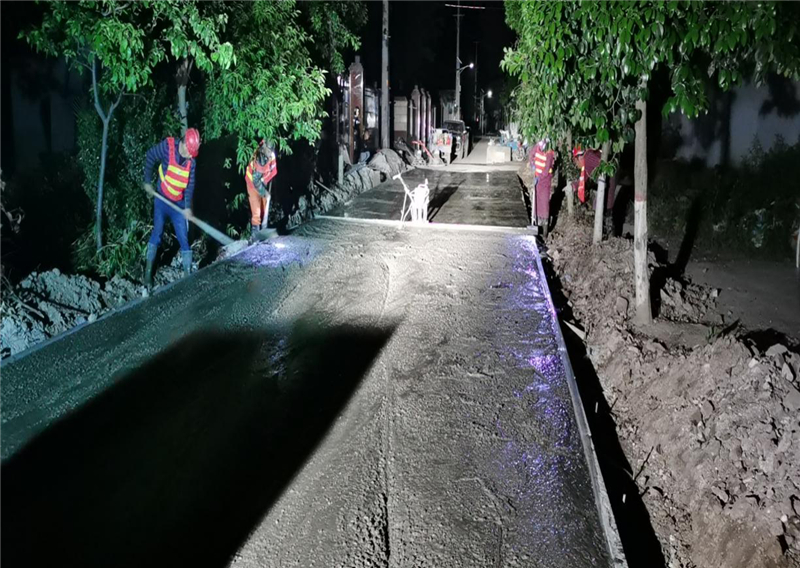 淩晨時分,城市的萬千燈火漸弱,界首農村公路項目工地上卻燈火通明,挖掘機、灰土拌合機、混凝土拌合站轟鳴聲此起彼伏,工程運輸車來回穿梭,一片忙碌的景象。
