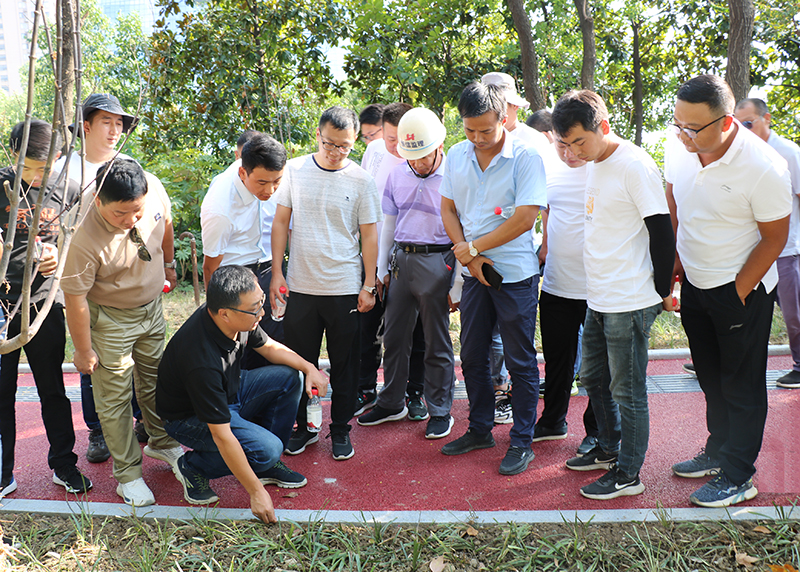 活動期間,安徽交建2019經開慢行項目經理吳金忠分享了施工管理的經驗,針對慢行係統側石、透水混凝土、仿石材道板磚鋪裝、聚合物盲道以及瀝青混凝土麵層施工工藝流程的控製,到邊到拐等細節處理方麵與在場的專家進行了深入的交流和探討。
