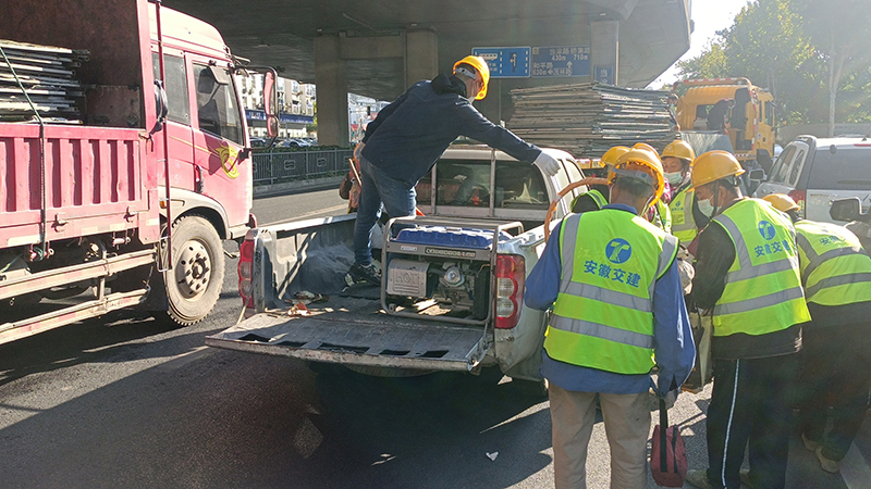 10月22日,因經開區疫情防控要求,需連夜對始信路以東、紫雲路以南、臥雲路以北、天都路以西區域進行封閉。在接到經開區管委會的消息後,安徽交建宿鬆路2標、7標項目迅速響應,立即組織人員、車輛設備及圍擋材料趕赴現場,經過一夜奮戰,前後出動人員30餘人次,應急車輛7餘台次,順利完成封閉圍擋的安裝工作。