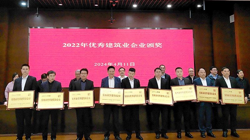 會議傳達學習了全國住房城鄉建設工作會議、全省創建一流營商環境暨推進民營經濟高質量發展大會有關精神,分析研判安徽省建築業發展形勢和應對策略,並通報表彰了“2022年度安徽省優秀建築業企業”、“2022年度安徽省建築業龍頭骨幹企業”。會議現場傳來喜訊,安徽交建獲評“安徽省優秀建築業企業(綜合基礎設施總承包類)”、“安徽省建築業龍頭企業”榮譽,常務副總裁兼總工程師儲根法參會並上台領獎。