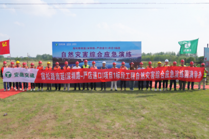 汛期來臨,為築牢安全防線,5月9日下午,安徽省交通建設股份有限公司承建的宿鬆路南延1標項目部開展自然災害綜合應急演練。本次演練緊扣實戰化要求,以 “人員安全、物...