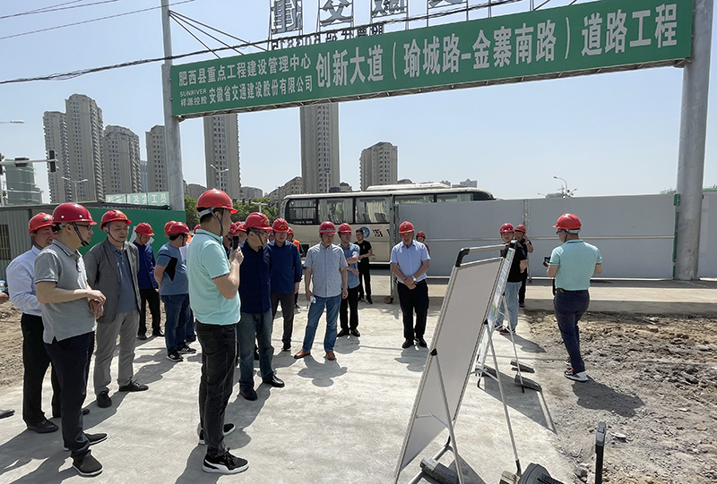 5月8日(ri)上(shang)午(wu),由(you)肥(fei)西(xi)縣(xian)重(zhong)點(dian)工(gong)程(cheng)建(jian)設(she)管(guan)理(li)中(zhong)心(xin)主(zhu)辦(ban)的(de)項(xiang)目(mu)觀(guan)摩(mo)交(jiao)流(liu)活(huo)動(dong),在(zai)安(an)徽(hui)省(sheng)交(jiao)通(tong)建(jian)設(she)股(gu)份(fen)有(you)限(xian)公(gong)司(si)創(chuang)新(xin)大(da)道(dao)項(xiang)目(mu)現(xian)場(chang)舉(ju)行(xing)。肥(fei)西(xi)縣(xian)重(zhong)點(dian)工(gong)程(cheng)建(jian)設(she)管(guan)理(li)中(zhong)心(xin)主(zhu)任(ren)範(fan)熹(xi)穎(ying)、副主任方平、黨組成員及項目管理科室負責人等一行出席觀摩活動。