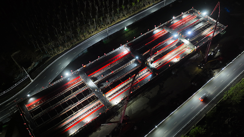 為保障首片現澆箱梁順利澆築,項目部嚴格按照品質工程的標準及要求,組織開展專家評審會,修改完善《現澆箱梁專項施工方案》,嚴把鋼筋加工、模板驗收、混凝土配合比設計工藝環節,並在澆築前就生產、技術、質量、安全等進行了全方麵交底。在澆築過程中,項目負責人靠前指揮、掌控全局,技術人員規範操作,安全人員緊盯現場,排查安全隱患,每位建設者有條不紊,各司其職。