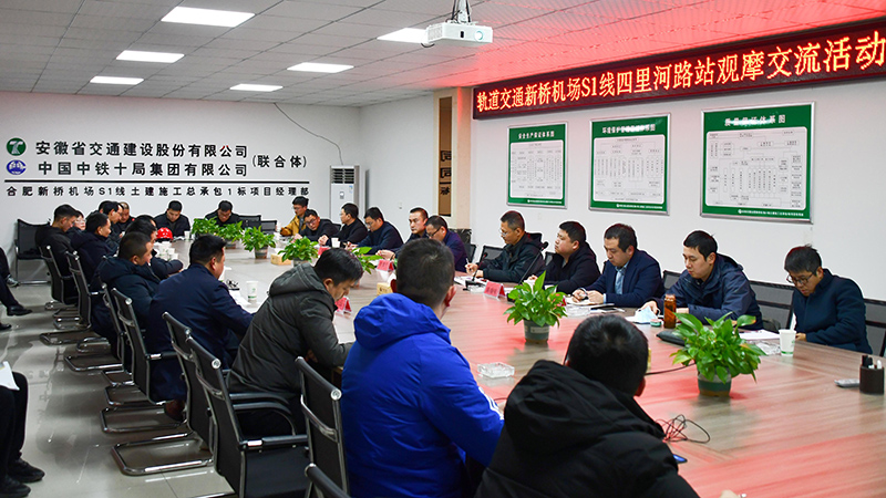 2月9日下午,合肥市建設項目安全質量文明施工管理觀摩交流會,在安徽省交通建設股份有限公司合肥市軌道交通新橋機場S1線土建1標項目四裏河路站施工現場舉行。合肥市建築質量安全監督站站長杜德平、市軌道交通建設工程質量安全監督站站長汪勁鬆、市軌道集團建設分公司副總經理周巨恒等相關領導出席觀摩會,安徽交建常務副總裁、總工程師儲根法陪同觀摩。