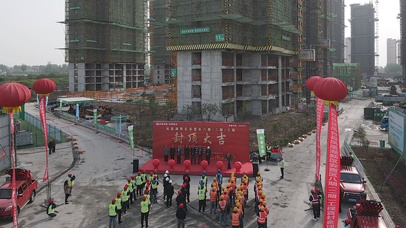 4月16日上午,由安徽省交通建設股份有限公司承建的鳳台縣鳳凰湖新區安置區八期(二期)工程迎來重大施工節點目標,新建13#樓層頂板混凝土澆築工作完成,該棟樓主體結構順利封頂,為項目整體建設按下“快進鍵”。