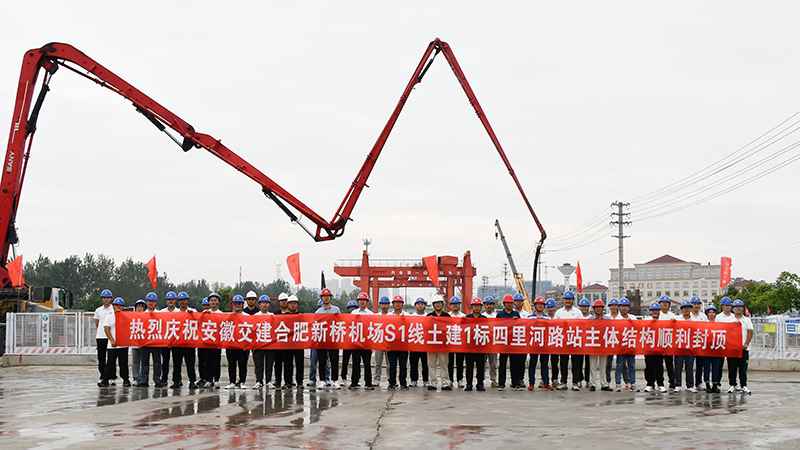 近日,由安徽省交通建設股份有限公司承建的合肥新橋機場S1線土建施工總承包1標四裏河路施工現場,伴隨最後一塊頂板的澆築完成,標誌著四裏河路車站主體結構順利實現封頂。