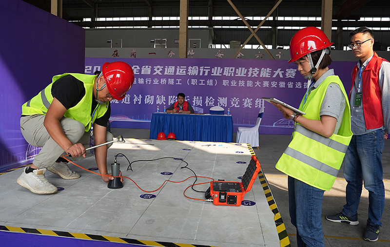 據悉,此次大賽由安徽省交通運輸廳、安徽省人力資源和社會保障廳共同舉辦。本次大賽共設置城市軌道交通行車調度員、新能源汽車維修工、橋隧工、電動港口裝卸機械司機4個職業賽項。比賽采取理論知識競賽和操作技能競賽相結合的方式,涵蓋了鋼筋骨架加工、隧道襯砌缺陷無損檢測、施工放樣3個競賽項目。
