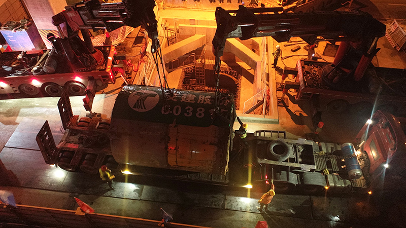 近日,由安徽省交通建設股份有限公司承建的合肥軌道交通8號線一期110kV耀遠路主變電所35kV電纜隧道頂管機從接收井成功完成吊裝出井任務,本次吊裝采用了低淨空折臂吊車接力吊裝技術,係合肥軌道交通建設首次應用。