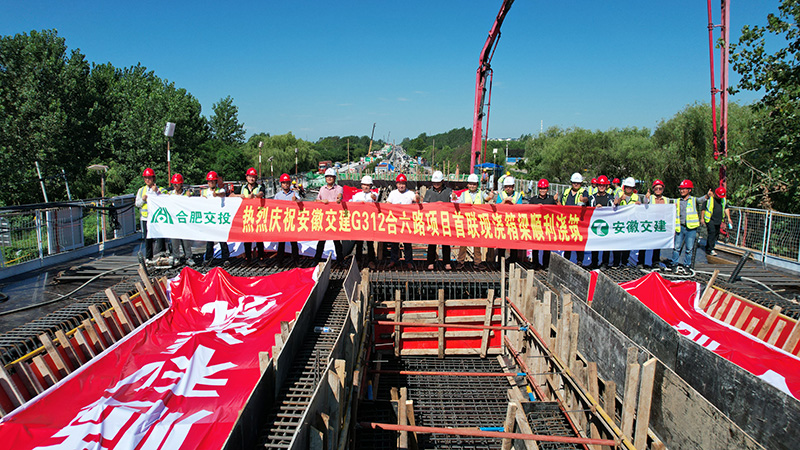 7月21日上午,由安徽省交通建設股份有限公司承建的G312合六路(新橋大道-小廟界)快速化改造工程項目迎來首聯箱梁混凝土澆築,標誌著該項目正式進入橋梁上部結構施工。