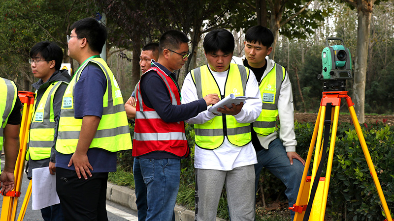 次日上午,在安徽交建大連路項目竣工封閉路段,學員早已準備充分、躍躍欲試。在“全站儀對點賽”和“水準+導線”技能競賽,導師互換小組以裁判的身份進行全程跟蹤,依據各組完成時間、操作規範性、測量結果以及第一天的理論成績綜合評判最終結果。