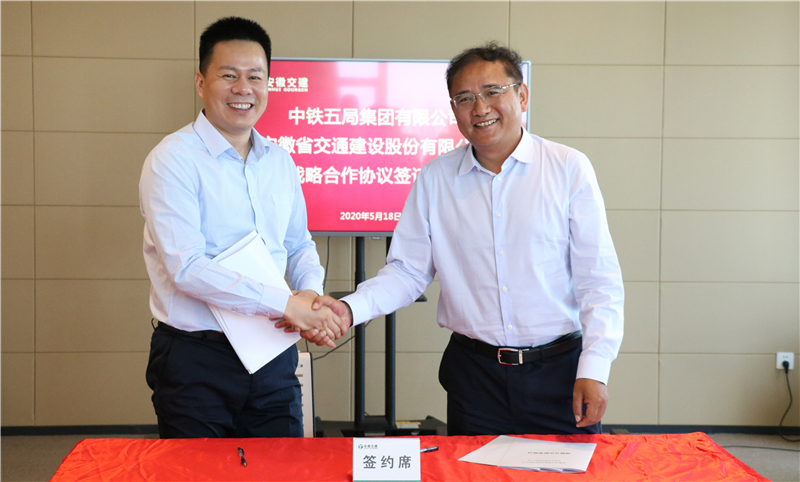 5月18日上午,安徽省交通建設股份有限公司(股票簡稱:交建股份,股票代碼:603815)與中鐵五局集團有限公司簽署戰略合作協議。雙方將本著“優勢互補、共同發展、誠信合作、戰略雙贏、互惠互利”的(de)原(yuan)則(ze),建(jian)立(li)全(quan)麵(mian)合(he)作(zuo)戰(zhan)略(lve)夥(huo)伴(ban)關(guan)係(xi)。中(zhong)鐵(tie)五(wu)局(ju)集(ji)團(tuan)有(you)限(xian)公(gong)司(si)華(hua)東(dong)區(qu)域(yu)指(zhi)揮(hui)部(bu)常(chang)務(wu)副(fu)指(zhi)揮(hui)長(chang)趙(zhao)文(wen)軍(jun),安(an)徽(hui)省(sheng)交(jiao)通(tong)建(jian)設(she)股(gu)份(fen)有(you)限(xian)公(gong)司(si)總(zong)裁(cai)彭(peng)小(xiao)毛(mao)等(deng)出(chu)席(xi)了(le)簽(qian)約(yue)儀(yi)式(shi)。