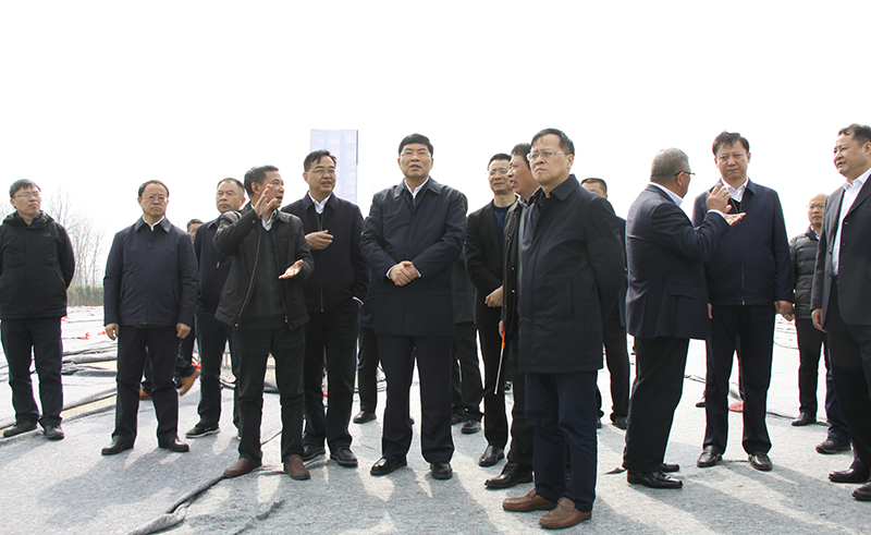 3月5日,安徽省副省長何樹山一行蒞臨安徽交建承建的固蚌高速路基三標洪集樞紐處視察2021年“縣縣通高速”固蚌高速項目建設進展情況。蚌埠市市委書記黃曉武、安徽省交通廳廳長章義、安徽省交通控股集團董事長項小龍及總經理錢東升、固蚌高速項目辦主任房濤、安徽交建固蚌高速GB-3標項目經理程海波陪同。